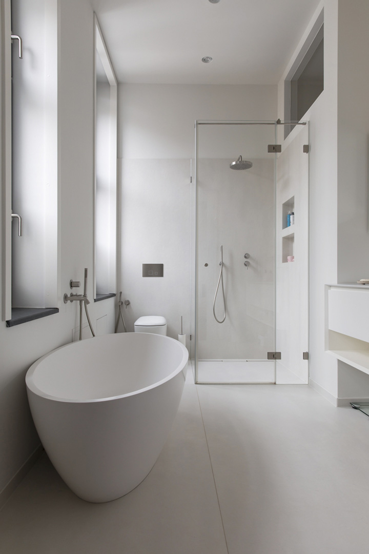 Das 8qm Badezimmer in einer Schöneberger Altbau Wohnung spricht die Sprache seines neue Besitzers. Hell, freundlich, modern, klassisch und schlicht. In der Umsetzung bedeute das Abriss, Fußbodenaufbau, Abdichtung und Fliesenarbeiten. In wenigen Wochen wurden unter anderem Balken freigelegt, Ausfachungen für spätere Entwässerung hergestellt, OSB- und Schwalbenschwanz Platten, sowie Fussbodenheizung verlegt, Estrich aufgefüllt, Entkopplungsplatten verlegt und abgedichtet. Alles notwendige Vorbereitungen für die grossformatigen Platten (125×250), welche sich nun in ihrer vollen Größe sowohl an den Wänden als auch auf dem Boden präsentieren. Alle erforderlichen Aussparungen für die Anschlüsse wurden direkt in die Platten eingearbeitet, ebenso die beiden praktischen ausgefliesten Fächer im Duschbereich. Die ebenerdige Dusche ermöglicht einen barrierefreien Zugang. Ein wunderbar unaufgeregter Wohlfühlort für ein wildes Familienleben…